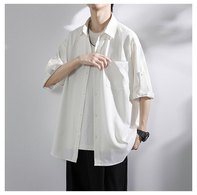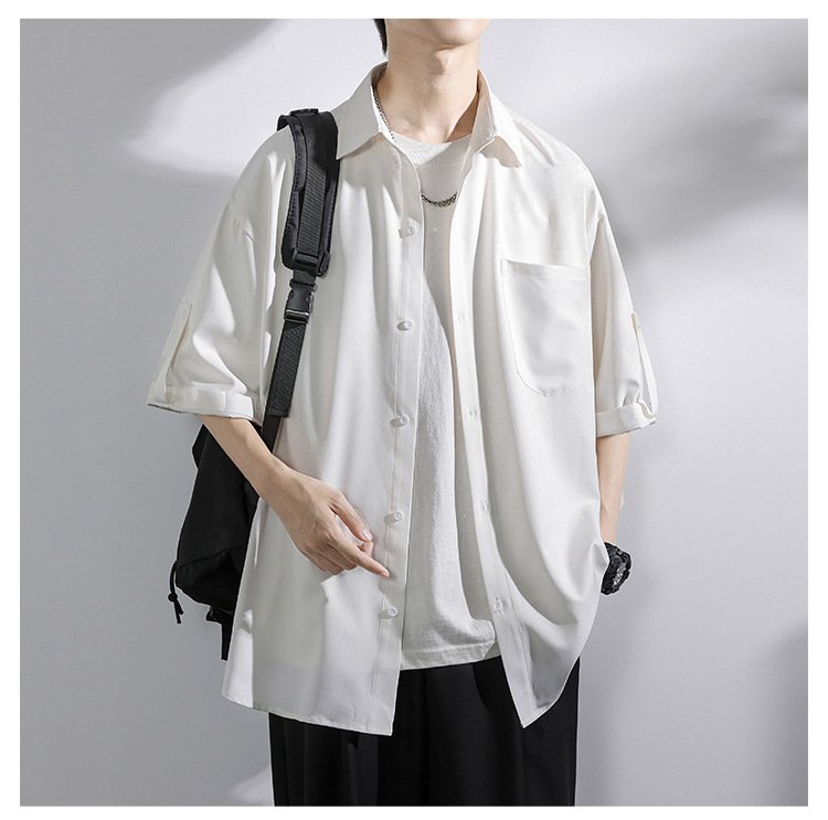 アイスドレープファッションシャツ 夏のルーズカップル薄手半袖シャツ タイドシャツ五分袖カジュアルシャツ